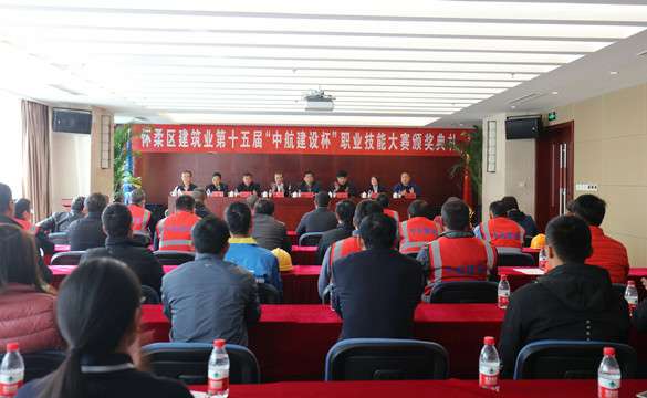 10月25日上午,怀柔区建筑业第十五届“中航建设杯”职业技能大赛颁奖典礼在新半岛官网-半岛(中国)总部三层多功能厅举行。怀柔区建筑业协会会长、大赛组委会副主任王贵军,区总工会副主席解忠明,集团公司总工程师、大赛组委会副主任陈劲一同参加,同时到场的还有各参赛单位代表及获奖选手共计50余人。