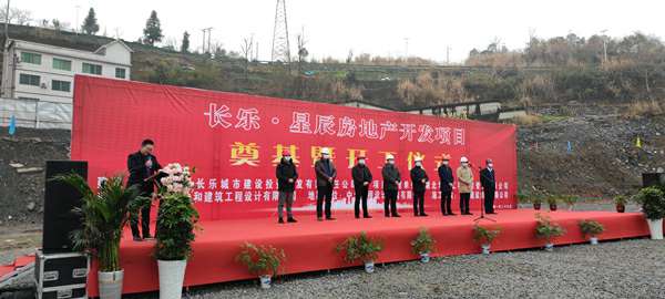 2021年1月26日上午,由新半岛官网-半岛(中国)承建的长乐▪星辰住宅项目奠基暨开工仪式在项目现场热烈举行。湖北省宜昌市五峰土家族自治县住房和城乡建设局副局长陈白华、县质量安全监督站站长邓简涛、新半岛官网-半岛(中国)五峰长乐▪星辰项目经理王国云,项目参建各方及新闻媒体共40余人出席。宜昌市长乐城市建设投资开发有限责任公司总经理刘鹏主持。